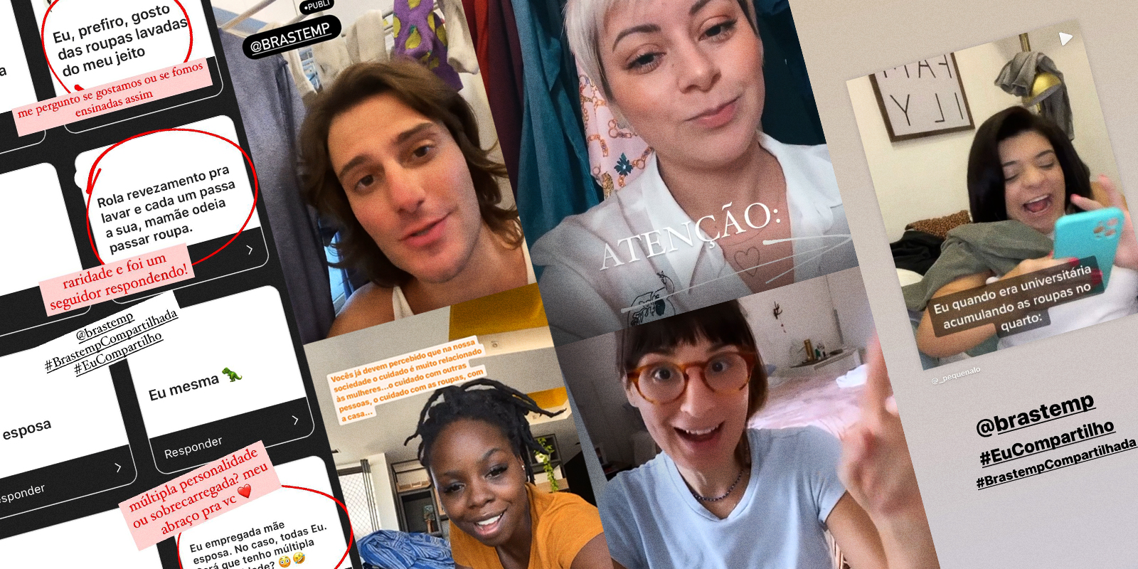 Em parceria com a Think Eva, a Brastemp selecionou alguns nomes como Hugo Bonemer, Tchulim e Pequena Lo para falar sobre a divisão de tarefas domésticas no lançamento da lavadora de roupas Brastemp Edição Compartilhada.